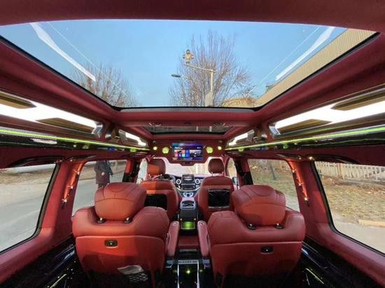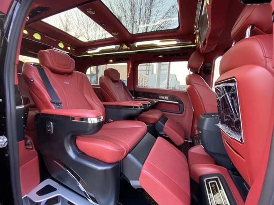 奔驰V250L改装七座采用2+2+3排列方式,第二排航空级首长席,带靠背俯仰、前后滑动、脚托升降、180°旋转,固定式扶手,通风功能,四向头枕、按摩、加热等多项功能,全方位疏散旅途劳顿。全车座椅甄选进口头层牛皮原料,联手国际尖端手艺缝线商,只为创造最舒服的触碰感触。