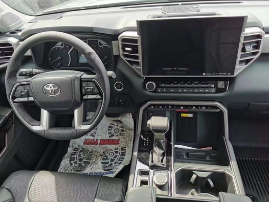22款丰田坦途的内饰设计也采用了新设计风格,“硬”还是第一感受。无论是平直的线条还是灰白的用料配色,车内的风格都是非常偏向于越野,宽大的悬浮式液晶中控屏幕也是挺抢眼的,根据不同配置也将提供有8英寸以及14英寸的不同配置,就是这个感觉还是很像“大彩电”,只是放在这台车上会显得更协调一些,功能上也丰富了在线车联网以及CarPlay车机互联功能。