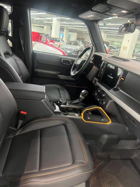 配置:2.0T EcoBoost 245马力 8速 换挡拨片 自动启停 越野悬架 7种驾驶模式 可锁定差速器 待自动紧急制动的预碰撞辅助系统(带新人探测)坡道辅助 倒车雷达 倒车影像 180度摄像头 巡航控制 车道保持 盲点检测 6.5英寸数字仪表 胎压监测 无线充电 8英寸中控屏 carplay Android Auto 十个扬声器B&O音响系统 9个气囊 SOS碰撞后警报系统(在安全气囊启动的情况下,自动解锁车门,启动噪音喝紧急照明) 无钥匙进入 一键启动 双曲自动空调 打孔皮座椅 前排加热 二排隐私玻璃 发动机遥启 自动开启远光灯 EPB电子手刹 Bronco 标志方向盘 天窗 LED大灯 全地形越野轮胎 235/65R17 涉水深度600。