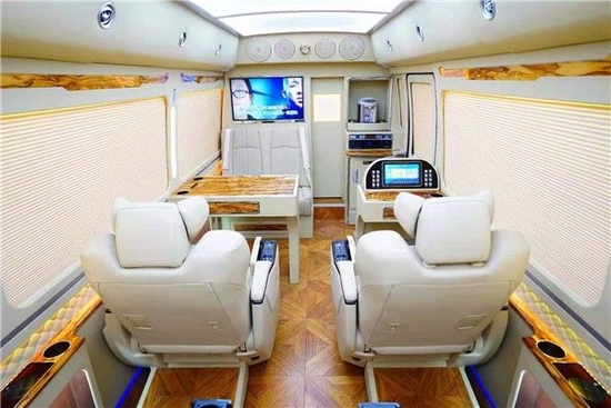丰田考斯特改装商务车在内饰的设计上是最值得称赞的地方,在座椅的设计上丰田考斯特可选的案例很有多,真皮座椅舒适而又美观,配备上舒适的高档办公桌,移动办公室的场景就可以随即而现,同样可旋转座椅更加方便了我们在乘车期间和同伴的聊天和游戏,而原装进口的埃尔法 (配置|询价)座椅更是可以减轻旅行的疲劳,华通丰业丰田考斯特改装商务车舒适设计也让丰田考斯特改装成为一种最舒适的座驾选择。