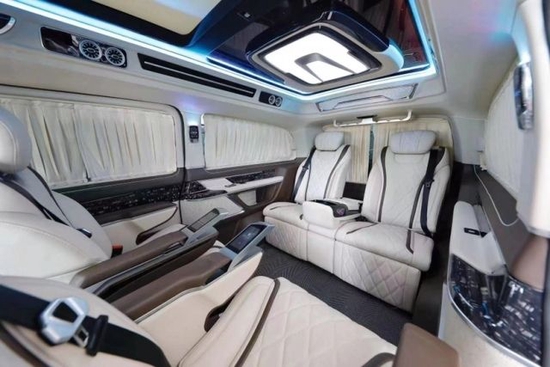 2022款进口奔驰V250商务车车内的座椅也全部都改头换面了,全航空独立座椅,多达10项的方向调节,更可以全座椅旋转向后,和三排座椅形成对坐格局,座椅加热,按摩,通风功能一样不少,这样的座椅小编只在航空头等舱中见到过。