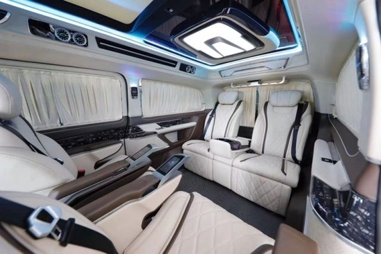 2022款进口奔驰V250商务车2+2+3座椅,也是商务车最为流行的座椅布局,第二排航空座椅,打孔真皮处置更透气,座椅透风、推拿赐与您更温馨的乘坐感触,更有360度扭转功用,无论是家庭出游照顾孩子、陪家人谈天,亦或是商务洽谈,都能让您随心所欲。