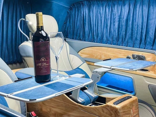奔驰V260L星影豪客4+2总裁版,升级的内饰令您感受到更奢华尊贵的礼遇。奔驰V260L四座版后排多功能航空首长席座椅为12向电动调节的奔驰S级 (配置|询价)座椅,小牛 (配置|询价)皮包覆,也是整车的核心区域,无论是单独调节三段式腿拖还是一键躺平,整个座椅达到独一无二的舒适度及调节精致水准,隔断骨架采用镁铝合金材质。整车配有进口麂皮绒窗帘,商务折叠小桌板让办公更加便捷。座椅中间配有保险箱让大佬们的收藏爱好无处不在,电动隐藏的酒柜,老板们随时在车上品尝一下82年的拉菲,感觉棒棒哒吧。
