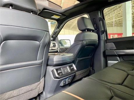 福特F150内饰采用独特的中控台和门饰板面漆和真皮包裹的方向盘,中控台部分辅以银色饰板装饰,六指针仪表盘的设计有些后工业时代的复古风格,采用带电冷热功能的可记忆式皮革座椅,头枕四向可调,搭配铝饰条和黑色钢琴烤漆内饰。