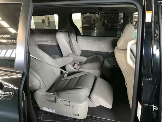 丰田塞纳内部空间非常大,充分发挥了MPV的优势。 座椅全部采用双色真皮,第二排座椅的腿部支撑,放倒第三排座椅,加上腿部支撑,完全变成了两张摇篮床,让长途旅行多了一份舒适。宽敞舒适后座空间,配上该车安全稳定的行驶系统,保证舒适的旅途。