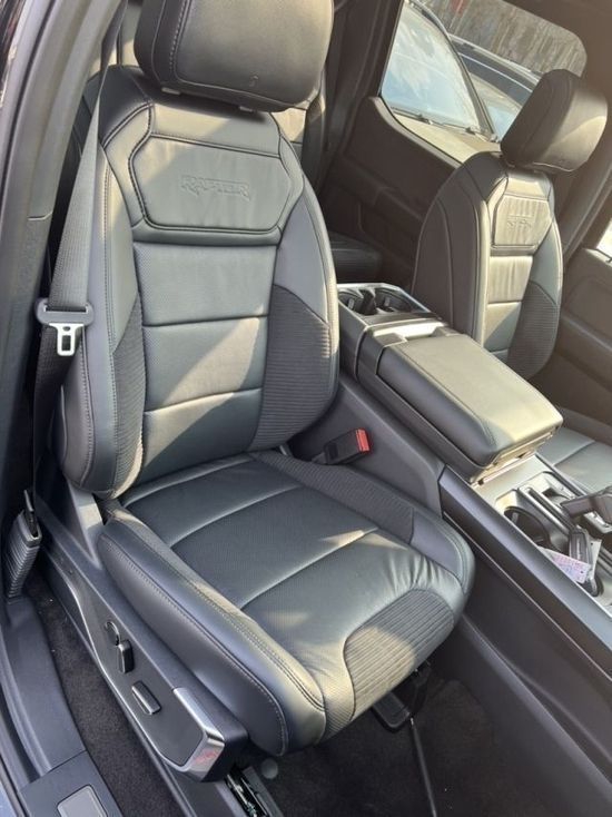22款福特猛禽内饰采用独特的中控台和门饰板面漆和真皮包裹的方向盘。中控台部分辅以银色饰板装饰, 六指针仪表盘的设计有些后工业时代的复古风格。采用带电冷热功能的可记忆式皮革座椅,头枕四向可调,搭配铝饰条和黑色钢琴烤漆内饰可电动升降的后窗带隔板和电热除霜功能。宽敞的空间可以让成员舒服的伸开双腿、展开双臂。