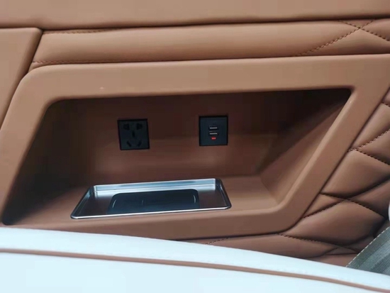 奔驰迈巴赫vs680商务车后排还有隐藏酒柜,杯托,当然还有电动热水壶,让您在车上就可以泡泡咖啡或者茶,可以说,这台车的后排就跟在家里的感觉差不多,非常舒适温馨。