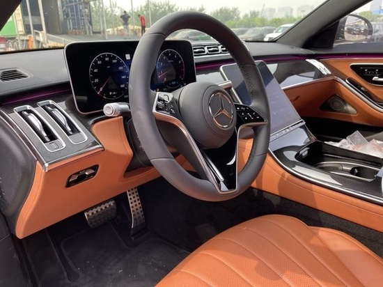 这台美规S500选择了棕色色内饰,搭配了高光泽杨木饰板,尽显欧式典雅。中控采用全新的设计,传统的内嵌式机械仪表盘被悬浮式液晶仪表盘所取代。而中控区域采用一块竖版大屏取代了几乎所有的机械按键,不过你完全不必担心不容易盲操作的问题,因为S500支持几乎所有功能的语音控制,完全达到了新能源智能汽车的水准。