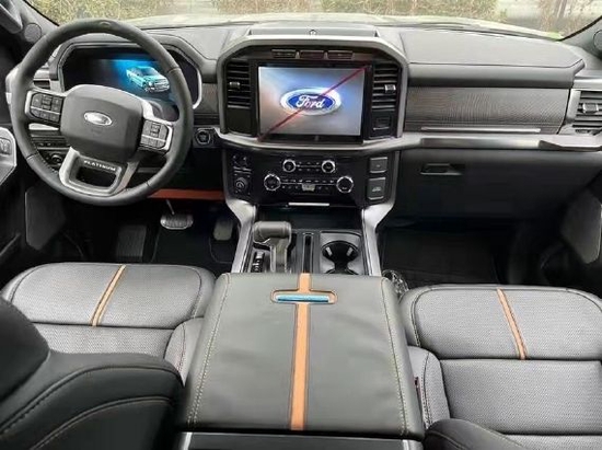 21款白金版福特F150 (配置|询价) 56万!配置:3.5 T10速,新款前中网,B/O音响,多路况模式调节,全景天窗,20轮,智能卡,密码锁,远近光LED大灯,并道辅助,遥控启动,电动脚踏,电调真皮方向盘,方向盘加热,倒车影像,后电眼,前排座椅通风加热带按摩,后座椅加热,镀铬外观套件,前雾灯,双区空调,前排座椅10向调节,电动多轮廓真皮座椅,主驾驶座椅记忆, 8寸导航屏,自动启停, 6气囊,胎压监测,拖车预留口镀铬轮毂锁,感应雨刷,镀铬排气尾管,电动开启后行李厢门,电动加热折叠车外后视镜,镀铬前格栅,巡航控制,隐私玻璃,氛围灯,内衬,备胎