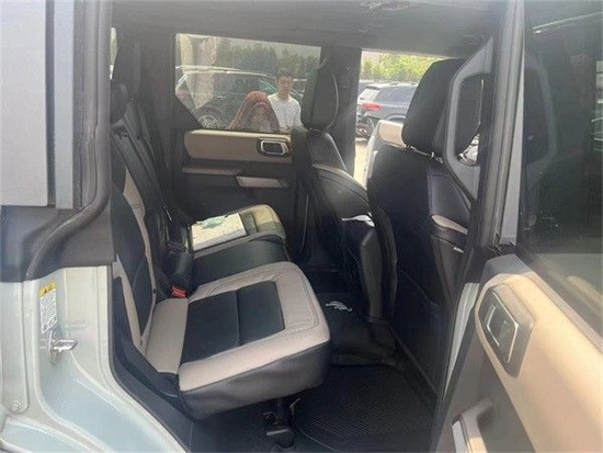 22款福特烈马Bronco车内采用硬朗的设计风格,中控台设计主次分明且有层次感,用料也厚实,多功能方向盘造型运动,中控屏幕采用内嵌式的设计增添了车内的时尚感,按键布局合理,档把设计精致,座椅宽大厚实,空间宽敞,实用性