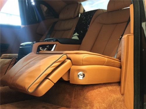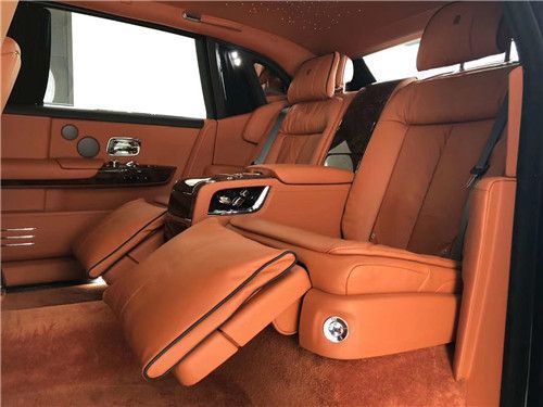 劳斯莱斯幻影电动折叠板和后排影院系统被巧妙的隐藏在前排座椅的椅背后,只需轻触按钮,便可以自如收放桌板和影院系统,带来完美的剧院体验。后排中央固定扶手做了重点优化,其中国可容纳带有威士忌酒具的酒柜、香槟酒具和冷藏箱,方便乘客畅快交谈,后排座椅角度可以任意调节,这一设计让客户无需转头便可视线自如交流。整个车厢内饰全部以最精美的高档材料装饰,使车内极具触感。