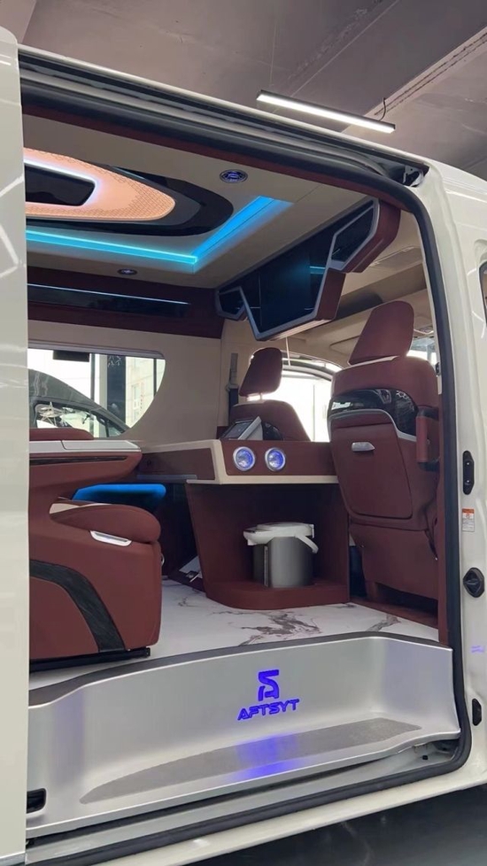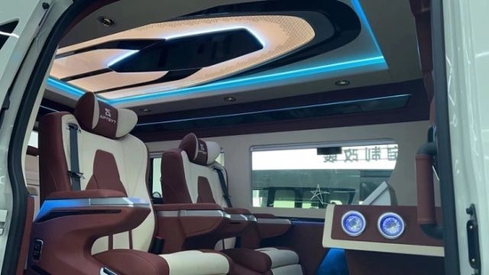 丰田海狮加装商务车改装前后之后判若云端的设计更加体现在内饰灯光的设计上。丰田海狮改装商务车原车出厂之时内饰颜色单一,宽敞的内饰空间也需要更加高端的照明。丰田海狮改装商务车,对于照明的设计上,我们可以选在车顶安装LED大灯,满足我们照明的需要。