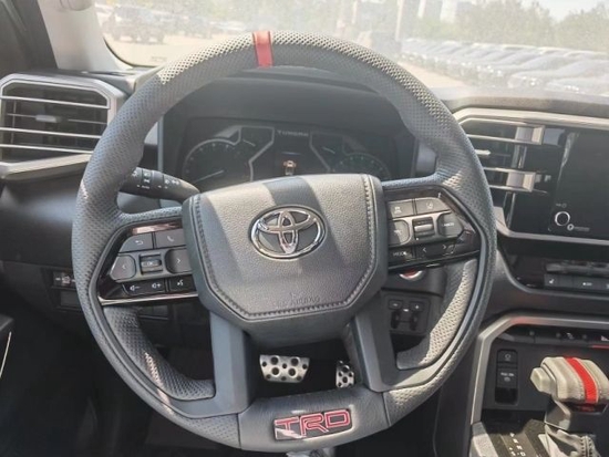 2022款全新丰田坦途TRD版皮卡车内乘坐、后排座椅宽大,足以满足身高195cm的贵宾,第二排座椅可以完全折叠收起,为乘客提供更宽敞的腿部空间,已经达到了中大型车的水平,完全可以满足舒适乘坐的需求,部分特殊的装载给您的路途更添信心。