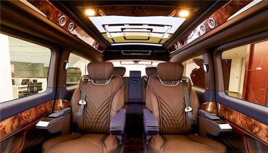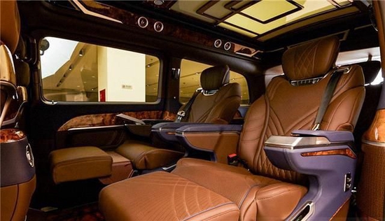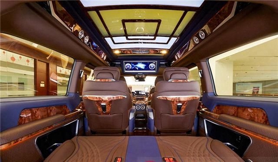 车顶部采用麂皮绒完美包覆,顶棚和侧壁都采取星空元素的设计,当车内顶灯开启之后,打造出置身星河的感觉,在这样的氛围当中,身心都得到了释放。定制的航空座椅,采用小牛皮纯手工包裹,独特的菱形纹路和线条相互搭配的设计,不仅仅增加美感,让身处其中时带来无限的舒适感。座椅具有多种电动调节功能,在一键操作下,可以完成按摩,加热,通风和脚托等多项功能,在旅途当中,可以随时释放身心的疲倦感受。