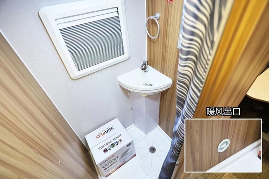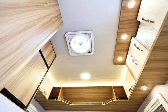 使用车内电磁炉时也不用担心换气问题,车顶安装了双向10速换气扇,还带有雨天自动感应关闭功能。