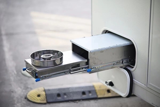 车外设计了抽拉式灶台,在车外炒菜可以避免油烟问题。