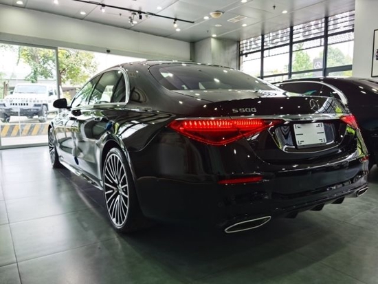 2022款奔驰S500尾部的设计同样采用变得更加扁平化,没有过于复杂的线条设计。镀铬的双边双出排气与小小的扩散器恰到好处,既不会过分严肃,也没有削弱S级该有的气势。三角形状尾灯组造型更加犀利,内部使用了多排点阵式的排列方案,可以完成更多点亮方式。