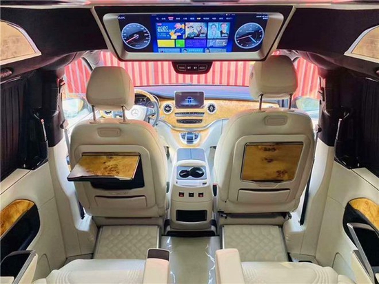 奔驰巴赫VS700L的第二排座椅采用了奔驰巴赫授权专用座椅,支持8项电动调节,此款航空座椅(带360度旋转、通风加热、160度电动后仰)还配备了两个巴赫头枕。