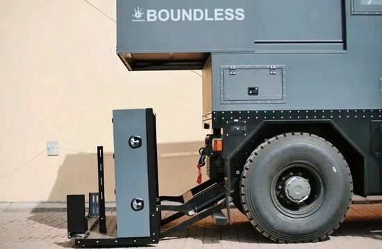 箱体采用六明治箱体复合材料,其开发的初衷为高安全性和高保温性,大量高科技材料的应用使6CM厚的箱体达到了红砖24墙的保温效果。高强度铝合金骨架经过热断桥处理,附重部分采用铝包木结构,使箱体工艺具有安全系数高,隔音隔热一流的特点,且在整车发生翻滚时起到保护坐乘人员的作用。重汽豪沃越野房车车窗采用越野房车专属车窗,配英国品牌遮阳帘和防蚊网。尾部20000T-MAX 24伏电动绞盘,备胎电动挂在系统,加挂两个外部储物盒。1600AH锂电,400升净水的超大水电系统是长期驻车的保障。自吸水功能可在水源处随意补水,美国红橡实木家具牢固可靠,液压尾架可提升2吨级重物(例如哈雷,宝马ADV等)。安全可靠,美观舒适是我们的设计原则。全国千家服务站是安全用车的保障。