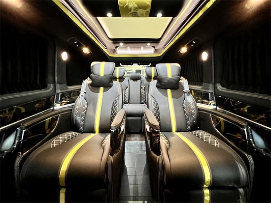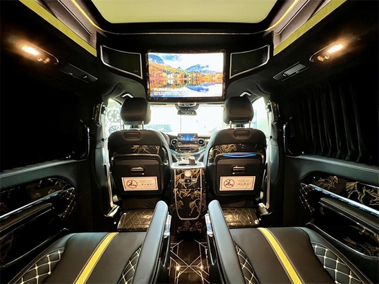 内部配置infinity燕飞利仕音响,搭配24寸曲面电视,高清娱乐影音体验由此开启,感受视听盛宴极致体验;奔驰V-Class 2022款 V260L 金提香版商务车座椅后可以折叠的小桌板,让阅读,放置物品,查看资料和签署文件都变得非常方便;奔驰V-Class 2022款 V260L 金提香版商务车黑色的橡木地板和感应壁灯柱让车内的有一种沉稳大气的氛围。奔驰V-Class 2022款 V260L 金提香版商务车内的装饰都采用纯手工缝制,在每一个细节的地方都有着对品质的完美追求。