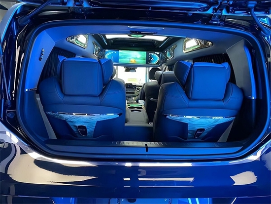 第三排座椅并没有采用电动沙发床的配置,而是采用424的独立调节靠背航空座椅,和第二排座椅一样的都有通风、加热、按摩、电动腿托的功能,于细微处照顾到车内的所有乘客。
