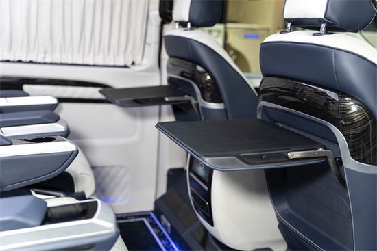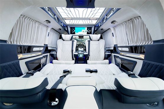 奔驰威霆商务车改装后的乘坐舱更加舒适,换上了高级商务航空座椅。该车采用七座不仅仅,在第二、三排格局合理舒适,第二排为航空级首长席座椅,带电动按摩、旋转、通风、加热等八项舒适性调节功能。第三排可以根据需要放平就是一张舒适的双人床。