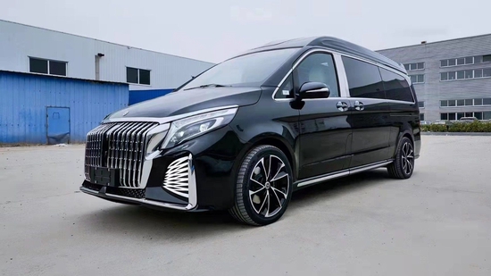 整车前脸包围一如既往,选用奔驰V250同款包围套件,使整车轮毂更加精致优雅减少了商务车敦实笨重的形象,中网采用镀铬式的直瀑设计,点缀的很恰当