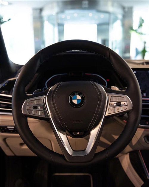 20款宝马X5内饰设计更高档,采用三辐式多功能方向盘设计,仪表盘跟宝马X7 (配置|询价)基本一致,采用无框后视镜设计,中控台底部还配备了无线充电功能。20款新一代宝马X5中控功能键盘也重新设计,中控出风口中间还配备了一块小尺寸液晶屏,上面显示一些空调温度和风量。