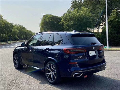 20款宝马X5外观相当霸气,设计强劲而锐利,整车尺寸较前款车型略有增大,更大进气口和一直延伸到车头中央进气隔栅的新的冰铜色车底护板,虽然身量变大,但是没有失掉宝马一贯的匀称风骨。21款宝马X5的独特在其动感的线条轮廓勾勒下一览无余。在一些设计元素的革新方面也运用了一些最新的家族式设计。前格栅变化比较明显,更为细长,并与头灯融为一体。