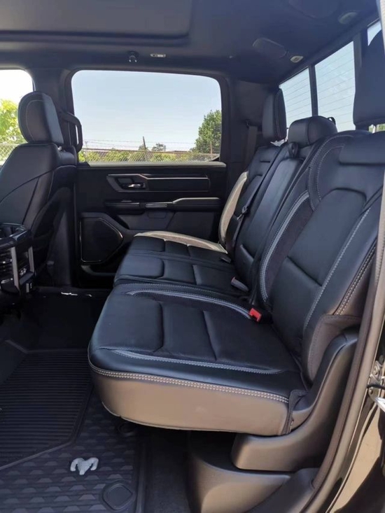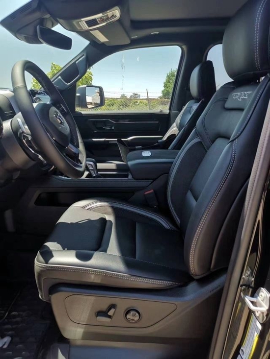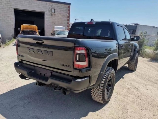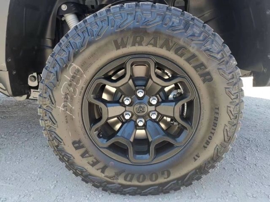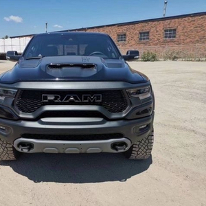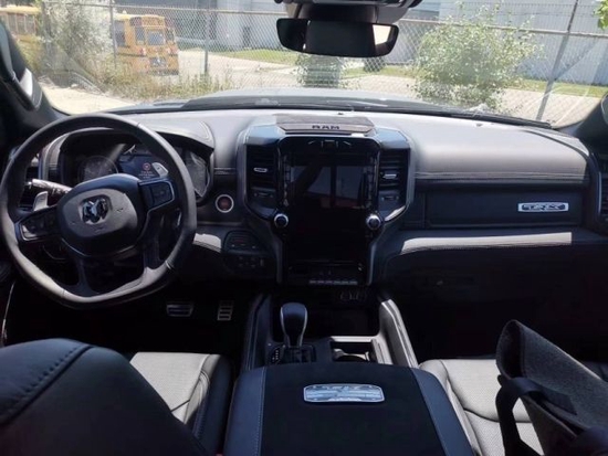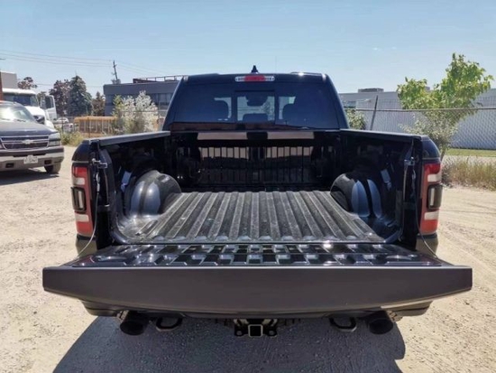 22款道奇公羊霸王龙TRX国六最新款新车传承了道奇Ram 家族高大威猛的造型设计,同时细节部分融入了更多高性能元素,包括经过黑化处理的前格栅,引擎盖两侧的黑色进气口,以及为了容纳巨大的机械增压器而设计的通风口等等。此外,新车还配备了视觉冲击力更强的黑色轮眉和外露式的拖车钩,看上去十分霸气。2022款道奇霸王龙TRX(现车)