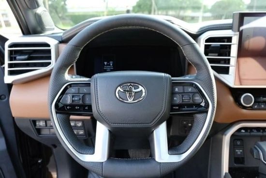 2022款丰田坦途1794在内部设计上,座椅全部采用真皮制作,方向盘和档把为桃木制作,坦途皮卡肌肉感的设计同样延续到内饰的设计中,在内部设计上,座椅全部采用真皮制作,方向盘和档把为桃木制作。