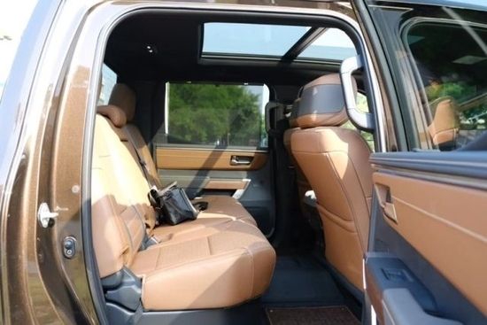 2022款丰田坦途1794的后排座椅非常舒适,椅背的倾斜度适中,腿部空间也很大,还增加了天窗、多功能方向盘、智能语音操作系统以及倒车影像,这些豪华配置使得坦途更具备轿车的舒适性丰田坦途这是一款全新的拥有高性能的野外利器。