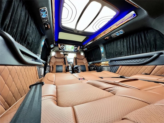 第三排活动空间本身就很宽阔;加上第二排座椅旋转形成的布局,完全就是一个豪华办公室,再加上立体环绕的音响系统,半隔断高清互联网液晶电视,两侧个性化定制的侧墙在车内进行商务洽谈也不会显得沉闷。最重要的是第三排还可以一键放平成一个豪华大沙发床,为车内人员提供一个非常舒适、私密的休息环境。好了本款奔驰V260L定制豪客V780七座商务车小峰哥就同大家介绍到这里。阅览世间美好,带您跨越山河,品味人间烟火,给您一个移动的家 -我是小峰哥