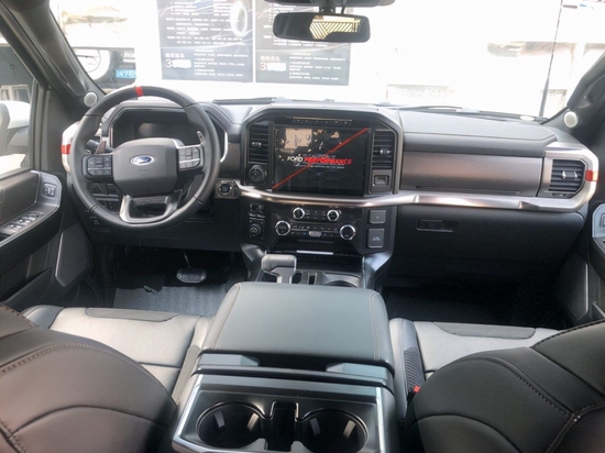 福特猛禽F150中控区域布局清晰合理,大尺寸的液晶显示屏,提升了其科技感,三幅式的多功能方向盘,加上类似于游艇一样的档把,给人一种强烈的驾驶冲动,大面积皮革材质的包裹,加上镀铬装饰的点缀,从而营造出了一种舒适豪华的内饰氛围。