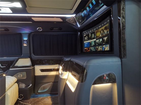 奔驰V260L四座商务车前后舱全隔断设计,隔断处55寸巨幕液晶可升降电视配合5.1声道高级影院音响系统、大功率双功放系统、大功率低音炮的配备,小范儿让车内的影音效果达到了。配合苹果高清显示器,您完全可以在座舱内找到电影院般的真实感觉。当音乐响起,无论是舒缓的情歌还是奔放的流行歌,本车搭载的全车立体声音响和大功率低音炮会营造出真实的音乐会效果,让乘客置身于音乐的海洋中,足以与KTV包房内的效果相媲美。