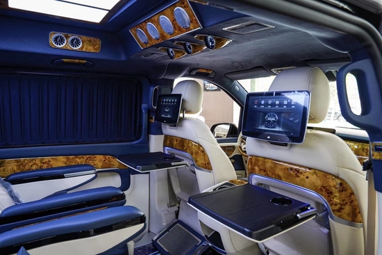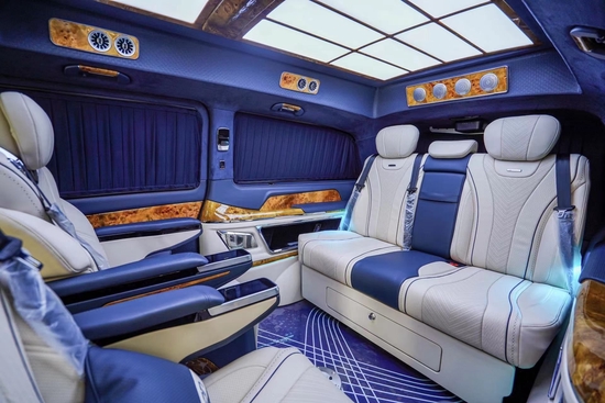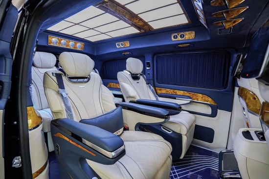 奔驰圣姆峰豪华商务车不仅有着非常亮眼的外观,车身内部,配置多元、各式娱乐设施,满足用户户外需求,车身内置航空高级座椅,全程为客户的舒适所服务。