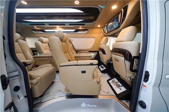丰田海狮商务车改装可以选择的座椅有360可旋转的航空首长席座椅,再配备高档的办公桌,方便我们在旅途中的会议以及商务活动的需要。丰田海狮改装同样也可以选择,原装进口的埃尔法豪华座椅,并且再配备电动加热通风以及电动脚托的装置,丰田海狮改装商车在内饰座椅上的选择上充分体现了对于乘车人员舒适度的考虑。