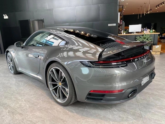 保时捷911 Carrera 4非常夸张的溜背线条直接拉伸到了贯穿式的尾灯处,与尾灯的整体造型协调呼应,非常美观。尾灯的造型就像两把锋利的水果刀,将刀柄拼在一起,形成了这完美的尾灯。智能开启的尾翼,当车辆达到一定时速之后自动打开,可以提供更好的尾部下压力,让轮胎保持良好的抓地力。