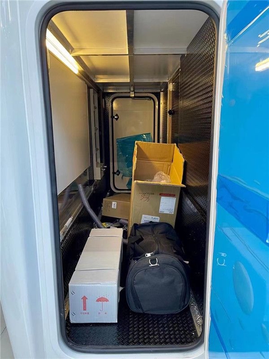 车辆外部的配置也很齐全,配有菲亚玛的遮阳棚、遮雨棚、外拉燃气灶、户外厨具储物柜、水电接口等等。