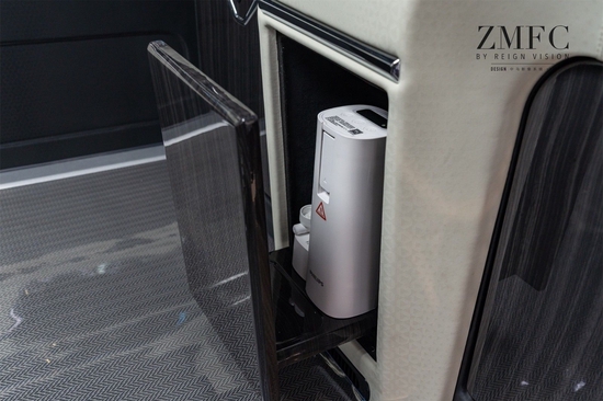 奔驰V260L傲旋大白鲨增加香槟架和折叠隐藏式航空铝制小桌台的功能,为商务洽谈和合同签订提供了更大的专业和便捷。