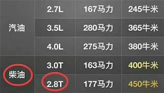 区别三:2.8T扭矩峰值是450牛米, 3.0T只有380牛米。