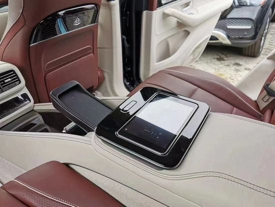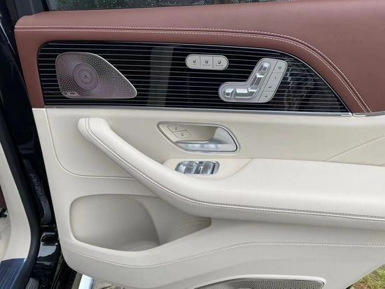 原装迈巴赫GLS600方向盘、中控台等处都使用了实木、真皮等材质,触感、观感都无可挑剔。同时,新车还配备了该车型专属的64色氛围灯、名为“NO.8 mood”香氛系统和Burmester品牌高端3D环绕音响系统。