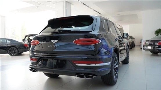 22款宾利添越车尾部分,新款添越使用了宾利最新家族式的尾部设计,整体看上去十分简洁、椭圆形尾灯犹如两颗珠宝,十分璀璨。双边共四出的排气,标志着新款宾利添越依然有着十分强悍的性能。
