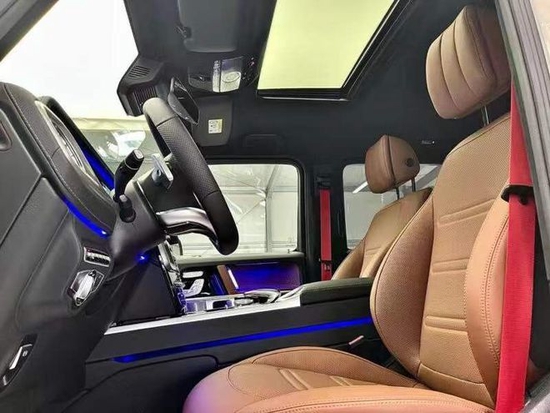 2021款奔驰G500相比老款G系,新款奔驰G500前脸造型圆润了许多新款保险杠更加精致看起来更加结实。中网改为镀铬落空的设计,奔驰标志性的实心车标表明了这辆车搭载有ACC自适应巡航以及360换车影响。环影20轮,4.0T,V8,9速,天窗,前排MB:13真皮座椅通风5203加热按摩,后778座椅加74热全液晶仪表几何光束大灯,LED日行灯,64色氛围灯,自动空调,柏林之声音响,三把差速锁倒影前后电眼,雷达测距,并道辅助,脚踏,后视镜电动折叠。