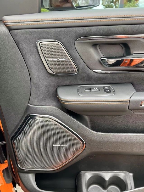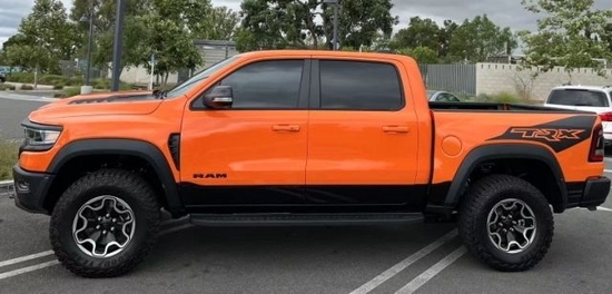 橙色限量包(18英寸x 9.0英寸机加工面黑色车轮,带停止和前进的自适应巡航控制,双窗格全景天窗,车道保持辅助,真皮和碳纤维平底方向盘,下部双色漆,4 个可调节货物系紧钩,可展开尾梯,Mopar喷图在箱体上,TRX特选版图标,行人紧急制动,真碳纤维内饰口音,“TRX特别版”控制台徽章)