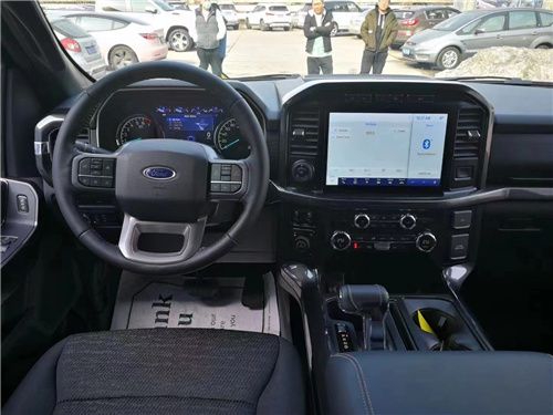 福特F150内饰采用独特的中控台和门饰板面漆和真皮包裹的方向盘。中控台部分辅以银色饰板装饰,六指针仪表盘的设计有些后工业时代的复古风格。采用带电冷热功能的可记忆式皮革座椅,头枕四向可调,搭配铝饰条和黑色钢琴烤漆内饰可电动升降的后窗带隔板和电热除霜功能。宽敞的空间可以让成员舒服的伸开双腿、展开双臂。