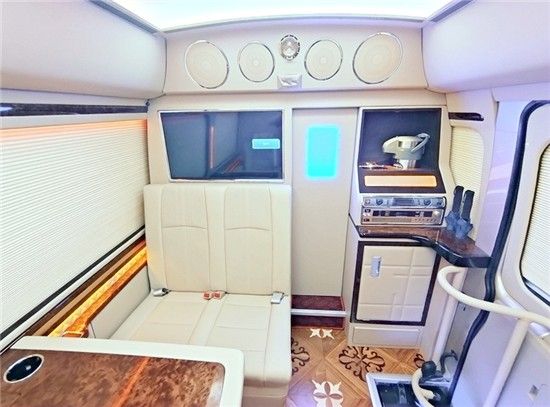 丰田考斯特政企接待版布局和加装配置,这个版型的中巴商务车算是最热销的车型,车内既能乘坐很多人,配置方面也可以加装一些办公常用的东西。车内还可以加装一个可旋转豪华独立首长座椅,豪华办公桌也是必不可少的,19寸吸顶电视搭配5.1声道系统最合适不过了。