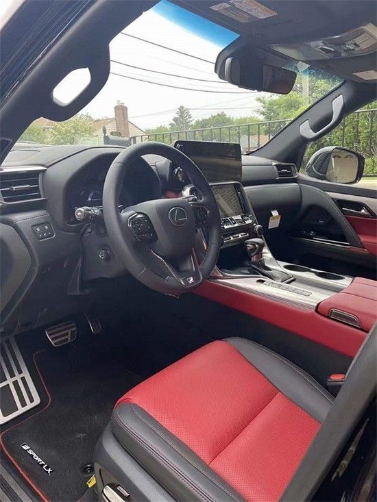 雷克萨斯LX600内饰用料得到了优化升级、并首次加入了双触屏设计,位于上方的12.3英寸屏幕负责显示音频、导航等信息,下方的7英寸屏幕主要负责控制空调系统,但也可选择显示越野参数等信息。