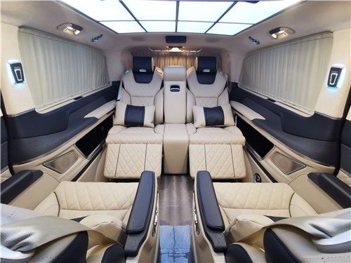 奔驰V260在内部装潢上也进行升级,车体提供真皮、Alcantara以及木材和碳纤维多种材质可供选择。而MPV车型看中的合金踏板、合金门把手以及内装台板等这款车都有所配备。科技配置还有AppleTV、两个独立15.6英寸显示屏、蓝光播放器以及DVB-T信号接收系统等。
