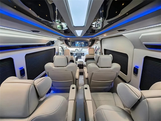 全新丰田海狮给予了这款车比较高的安全系数,提供全车原厂真皮座椅,其中第二排、第三排的四个座椅是著名的领袖座椅,配备高档真皮,带可任意调节角度的奥特曼腿托。座椅靠背角度可以任意调节,直至全部放倒,一个座椅就是一张舒适的床!第二排、第三排座椅都配备了小桌板,乘客完全可以在车里处理很多商务工作。